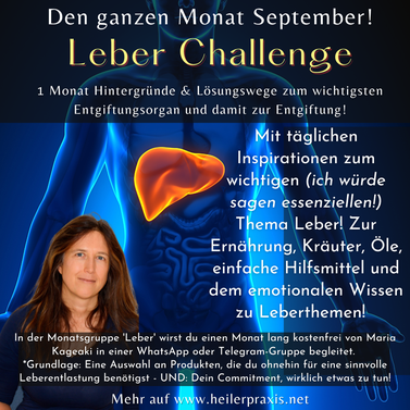 In der Monatsgruppe 'Leber' wirst du den ganzen September über kostenfrei von Maria Kageaki in einer WhatsApp oder Telegram-Gruppe begleitet.
